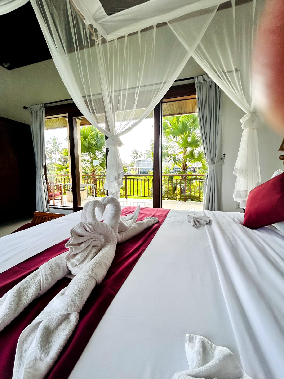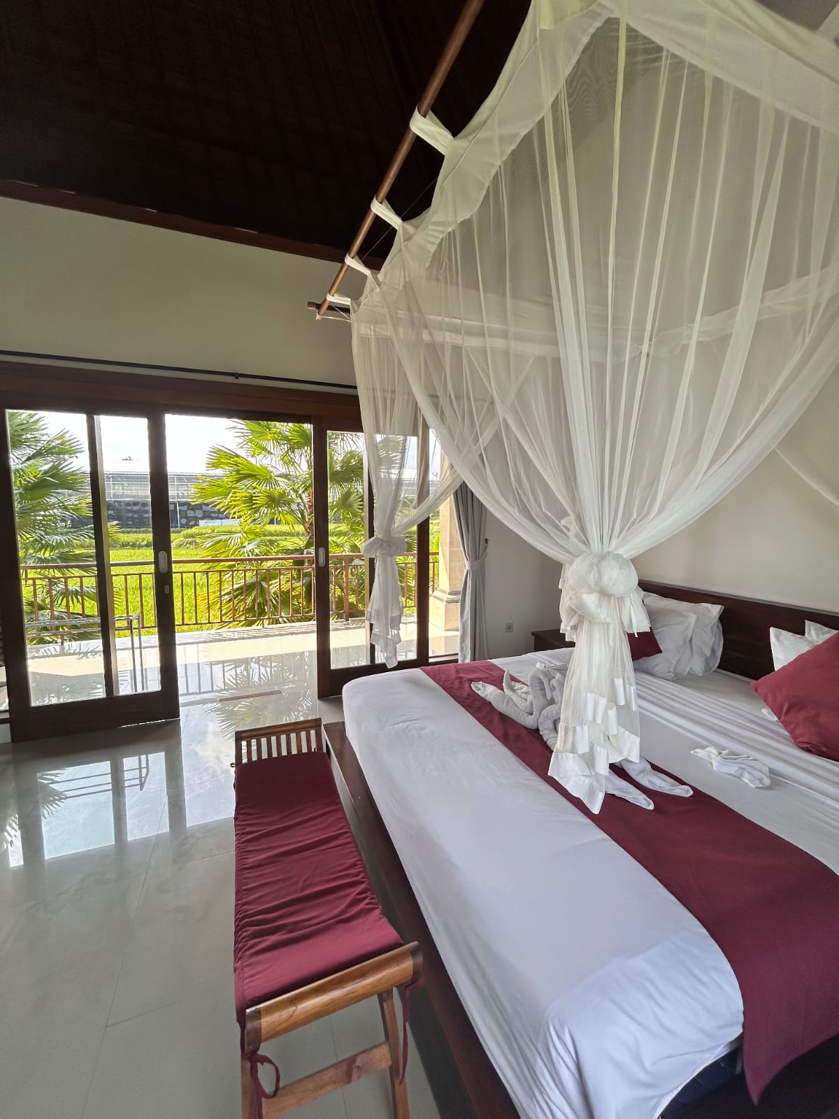 Our hotel is located just 3.2km from Ubud Center. a double bed room with a rice field view and shared pool offers a tranquil retreat surrounded by nature. Enjoy stunning vistas, cozy interiors with modern amenities, and a refreshing pool perfect for relaxation. Ideal for couples or solo travelers seeking serenity and comfort.